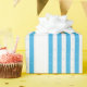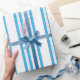 Clean winter wrapping paper featuring blue stripes with delicate snowflake patterns. Perfect for Christmas, winter birthdays and seasonal gifts. This minimal gift wrap adds a fresh, elegant and modern touch to any present.