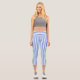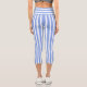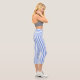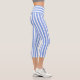 Blue and white striped high-waisted Capri leggings.