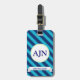 Bold blue and turquoise stripes decorates this fun luggage tag. Customise this luggage tag by changing the monogram letters and phone number to suit your needs. The design is from original art.