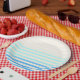 Blue striped paper plates