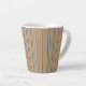 Latte coffee cup or tea mug with a spring-inspired design of blue stripes on a light toffee brown background.
