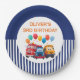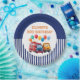 Blue Striped Truck Birthday Theme Paper Plate