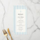 Elegant baptism menu cards that feature light blue & white stripes and a simple cross on an ivory background.