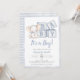 Watercolor Blue Stripes Boy Elephant Peanut Baby Shower Invitation