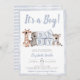 Blue Stripes Boy Safari Animals Baby Shower Invitation