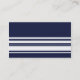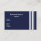 A professional looking business card with navy blue background and white pinstripes on the right. Space for your company logo if needed.