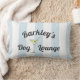 Add a touch of whimsy to your home with this light blue and white striped lumbar pillow personalised with your dog's name, a martini glass, and "Dog Lounge" text. A matching dog bed, blanket and pet bowl are also available in this fun design.