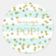 Blue Stripes Gold Confetti She's Ready to Pop Classic Round Sticker