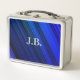 Blue Stripes Initial and Name Metal Lunch Box. Add your Initials/Name (or whatever text you prefer) to both the front and back. A nice metal box with shade of blue stripes. Smart and subtle.