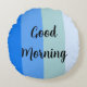 Cool blue and light green stripes pattern and a customisable text saying: Good Morning. Fits a cheerful marine style.