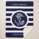 Blue Stripes Pattern With Nautical Boat Anchor Sherpa Blanket