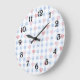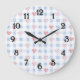 Blue Stripes Pink Hearts Large Clock