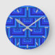 Blue stripes square scales pattern round clock