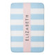 Blue Stripes, Striped Pattern, Lines, Your Name Bath Mat