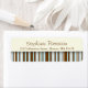 Coordinating patterns of stripes and circles in pastel blues, teal and brown makes a lovely return address label for any occasion.