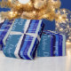 blue stripes with names wrapping paper
