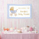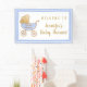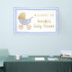 Welcome your guests to your baby shower with this cute minimal baby boy shower welcome banner featuring a pastel blue and gold retro baby carriage and the mother-to-be's name in a stylish script. You can personalise the text on the carriage with the baby's name or gender ("It's a Boy!") or leave blank.