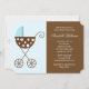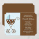 Simply sweet baby shower invitation or new baby birth or adoption announcement features a beautiful vector illustration of a baby carriage or stroller in shades of blue and brown. Custom colours available by request.