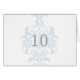 Simple with chic elegance describes this sophisticated Subtle Damask Wedding Table Number Card with a light blue damask flourish background. This classy table card is perfect for a traditional wedding and can be easily customised with a table number(s) or your wedding details. For more customisation options, click on the Customise It button.