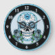 Dia de los Muertos (Day of the Dead) sugar skull with roses and hearts in hues of blue.