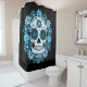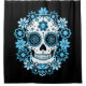 Dia de los Muertos sugar skull in colourful hues of blue surrounded by flowers.