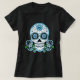 Dia de los Muertos (Day of the Dead) sugar skull with roses in hues of blue.