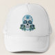 Dia de los Muertos (Day of the Dead) sugar skull with roses and hearts in hues of blue.