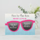 Fun in the Sun!! This invite has a blue background that fades. There's large hot pink sun glasses across the invitation. In the black part of the glasses you personalise the invitation with your party information. Check out our many other products and designs in our store.