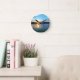 Blue sunset on lake round clock