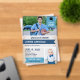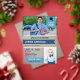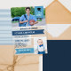 Acrylic graduation party invitation personalised with two photos of the graduate. On a light blue swallowtail flag at the top right corner, a graduation cap and class of the year. Add your son's name in white against a deeper blue swallowtail flag running across the blue, white, and transparent acrylic graduation party invitation.
