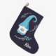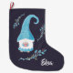 A cute Christmas stocking with a blue Scandinavian gnome drinking some hot cocoa to warm himself up and with some floral embellishments . Personalise it with a name using the template .