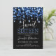 Blue Sweet 16 Birthday Sparkly String Lights Invitation