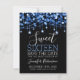 Blue & Black Sweet 16 Birthday Sparkly String Lights "Save the Date" announcement template.