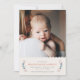 Announce the arrival of your beautiful baby girl with this simple and sweet birth announcement. The name of your baby, as well as the birth information, is framed by a wreath of delicate flowers and leaves. The top of the design features a pretty scalloped border. There is also space for a large photo of your new addition. The back of the card features a blue, hand-drawn gingham pattern... Be sure to check out the coordinating self-addressed envelope.