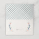 Created to coordinate with the "Sweet Floral" birth announcement collection, this pretty, folded place card features space for a guest's name and table number, framed by a wreath of delicate flowers and leaves. The inside of the card has space for a custom message, and the back of the card features a blue, hand-drawn gingham pattern. This place card is perfect for baby showers, as well as bridal showers and weddings.