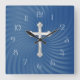 Blue Swirl Background White Pearly Cross Square Wall Clock