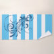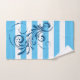 This dark-blue swirl over light-blue and white stripes pattern is a fun way to add some elegant touch to your bathroom decor.