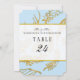 Blue Table Numbers Modern Hand Drawn Leaf Leaves