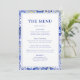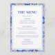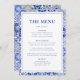 Transport your wedding guests to the heart of Mexico with our Blue Talavera-themed wedding menu. This elegant and modern design, inspired by the beauty of Spanish-Mexican culture, adds a touch of exotic charm to your destination wedding celebration. Personalise your menu to feature the delectable dishes that will delight your loved ones, and infuse your wedding with the vibrant hues and cultural richness of a Spanish fiesta. With this stylish and unique menu, your celebration will be a fiesta to remember, combining elegance and tradition in one delightful package.