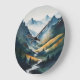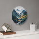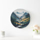 This captivating horizontal wall clock presents a breathtaking mountain scene, masterfully rendered in soothing shades of blue and tan that evoke a sense of serenity and awe. At the heart of the composition, a crystal-clear stream meanders gracefully down the mountain, its waters reflecting the sky's azure hue, creating a harmonious blend of colours that exudes tranquillity. The mountains, depicted in varying shades of tan, rise majestically against the backdrop, their peaks touching the sky, suggesting both their grandeur and the timeless beauty of nature.