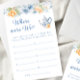 Transport yourself to an exquisite garden of elegance with our Blue Tea Pot Where Were We Bridal Shower Game, a celebration where sophistication meets the refreshing charm of citrusy delight. This design is a seamlessly blending the calming hues of blue with the vibrant energy of yellow lemons to create an ambiance of pure refinement. This item features delicate blue florals and whimsical lemons, with the graceful inclusion of a teapot adding an extra touch of charm. The yellow and blue colour scheme harmonises in a dance of elegance, setting the perfect tone for an afternoon filled with tea, laughter, and timeless beauty. Click on the “Customise it” button for further personalisation of this template. You will be able to modify the name, including the style, colours, and sizes. Matching items available.