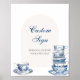 Custom sign featuring watercolor stack of blue teacups. Personalise with your own text. Matching collection in the Adore Paper Co. Zazzle shop.