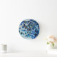 Blue Teal Abstract Watercolor Square Pattern Round Clock