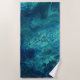 Blue Teal Acrylic Pouring Abstract Fluid Art Beach Towel