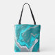 Blue, Teal and Turquoise Marble Fluid Art Monogram Tote Bag