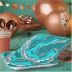 Blue, Teal and Turquoise Marble Fluid Art Paper Plate