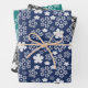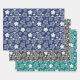 Blue, Teal, Black & White Star & Snowflake Pattern Wrapping Paper Sheet