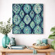 Make a bold statement with this striking teal and navy geometric watercolor design, featuring layered hand-painted motifs inspired by global textile patterns and modern boho style. The rich blue background combined with vibrant aqua and turquoise shapes creates depth, movement, and visual energy, making this artwork a perfect focal point for contemporary interiors.