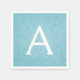 Teal Aqua Blue Faux Glitter and Sparkle Elegant Monogram Birthday Party Napkins. This Birthday Party, Bridal Shower, Wedding, Baby Shower Napkin can be customised to include your initial and first name.