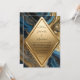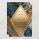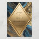 Blue Teal Gold Agate Marble Geometric Wedding Invitation